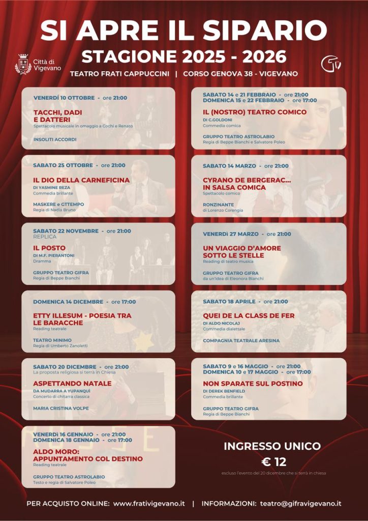 Nel Teatro dei Frati Cappuccini di Vigevano, anche quest’anno “Si Apre il Sipario” con l’entusiasmo di sempre e con la speranza di ritrovare i favori del pubblico così come nella passata stagione 24-25.