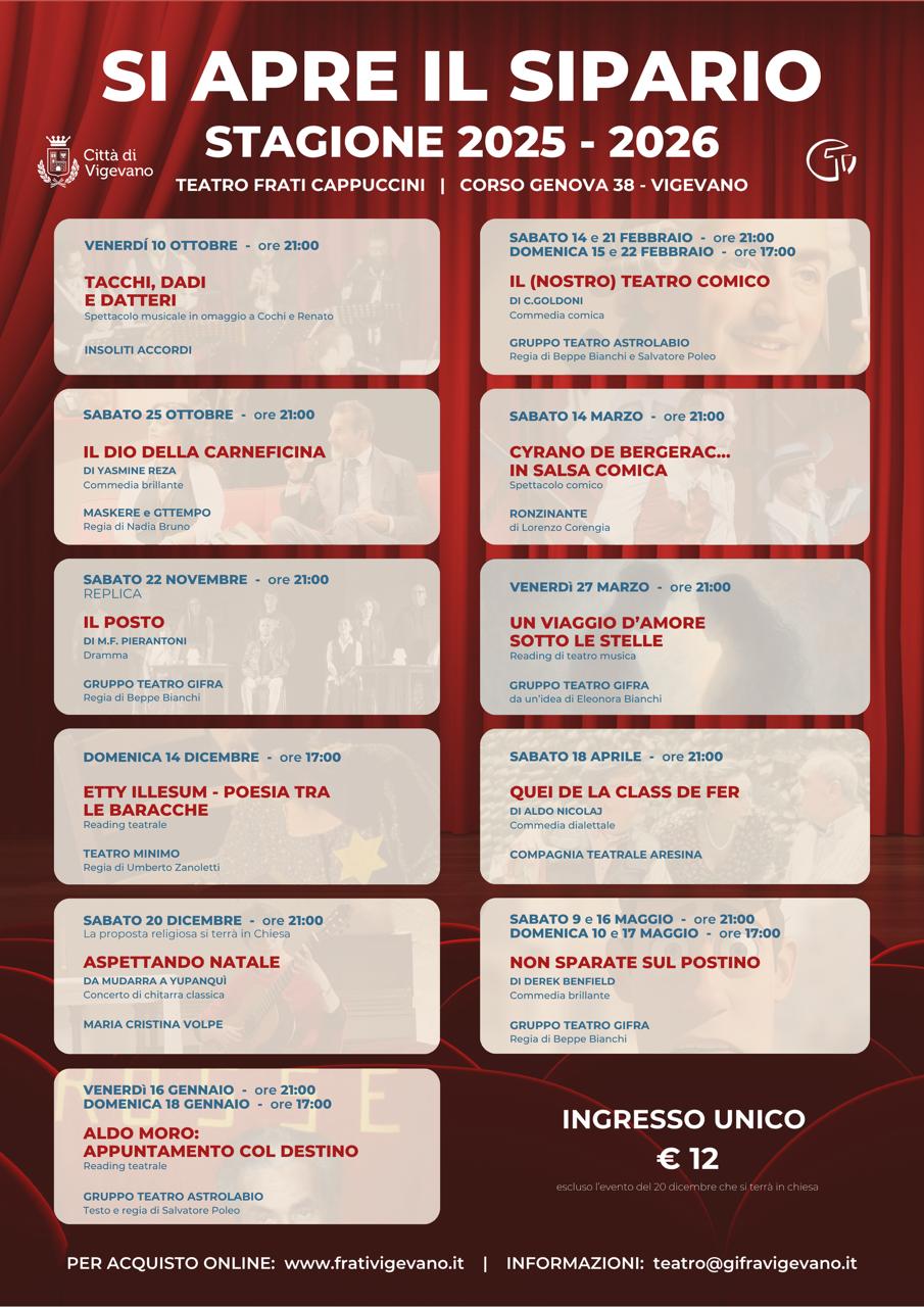 Nel Teatro dei Frati Cappuccini di Vigevano, anche quest’anno “Si Apre il Sipario” con l’entusiasmo di sempre e con la speranza di ritrovare i favori del pubblico così come nella passata stagione 24-25.